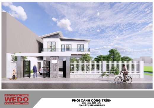 Khác xa so với những mẫu thiết kế nhà 2 tầng được xây dựng theo phong cách truyền thống mái thái trước đây, mẫu nhà 2 tầng mái lệch hiện đại của gia đình chị Liên ở Vụ Bản, Nam Định do WEDO thiết kế với tổng diện tích lên đến 187m2, sở hữu vẻ đẹp độc – lạ đã phá vỡ đi khuôn mẫu của kiến trúc đơn thuần. Ra đời trong quá trình quy hoạch phân khu xây dựng mô hình làng đô thị, chủ đầu tư của căn nhà đã mang đến cho làng quê mình một diện mạo mới mẻ, trẻ trung và khiến cho hàng xóm xung quanh vô cùng ngạc nhiên.