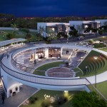 The building design was conceived with sustainability principles, aiming at the maximum well-being of people and respect for nature. The decision to semi-bury the architecture is a strategy to achieve thermal comfort, with the cooling coming from the ground. On the other hand, the collection of rainwater is proposed to reuse it for the irrigation systems of the golf course. In turn, the central water source, together with the green amphitheater, provides a microclimate that, together with the optimal crossed ventilation under the bridges, creates a comfortable environment in dry seasons. For aesthetic purposes, in the dry season, mechanical means will be used to raise water and make “the dry stream” be an “artificial stream” for the pleasure of all senses.