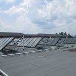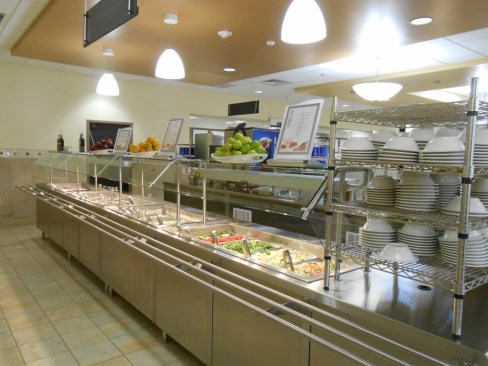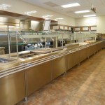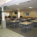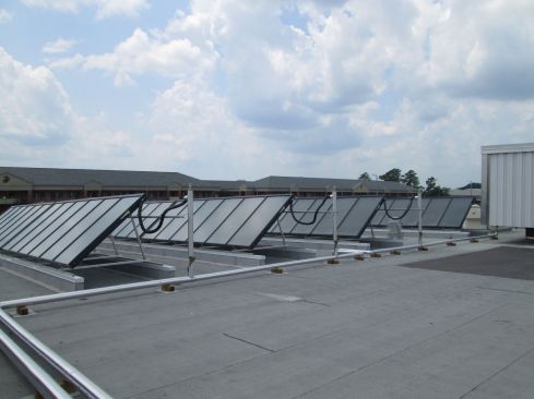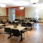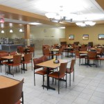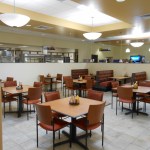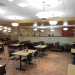 Sustainable design features include a daylight harvesting system to provide a means to obtain natural light inside the building and lower the need for additional fluorescent lighting. This system includes tubular daylighting devices which bring sunlight into the center dining spaces and interior offices. Light shelves were added to the perimeter windows to project additional natural light farther into the dining spaces. Additionally a solar thermal water pre-heating system is used to pre-heat the Mess Hall’s water supply.
