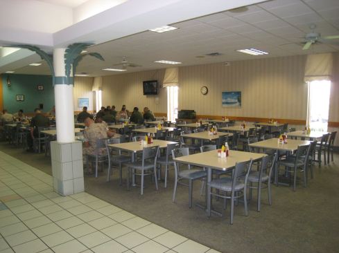 Renovations included demolishing interior walls, doors, windows, floor finishes and ceiling systems. In addition, the removal of the under slab drain piping, abandoned water lines, gas lines, HVAC piping, ductwork and electrical conduits penetrating existing floors and walls are included in this project. The new renovations included walls, doors and frames, windows, storefronts, ceilings, floor and wall finishes, kitchen equipment, a new fire protection sprinkler system, and Mechanical Penthouse roof. The Mess Hall has a brand new HVAC system. A water softening system, rooftop solar thermal water pre-heating system and new plumbing fixtures were installed. The existing electrical system, fire detection and alarm system, interior lighting distribution system and building mounted exterior lighting were replaced. A new paging/intercom system was also installed.