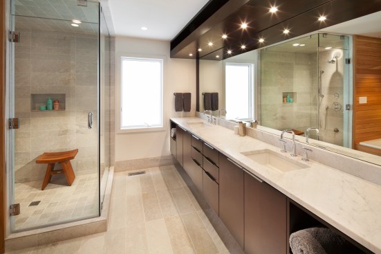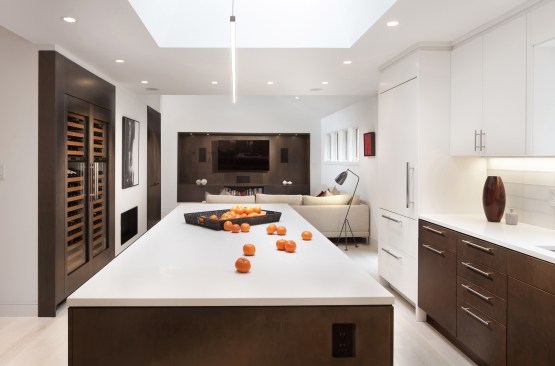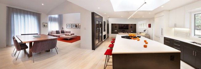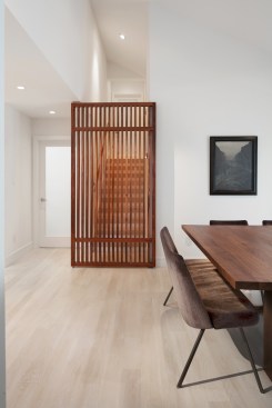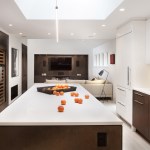 A Metro DC couple looked to update their mid-80s “contemporary” split level. The existing home was comprised of a collection of generic rooms adjacent to lofty two-story spaces which were typical of the era. Also typical of the era were the generally uninspired use of materials, and detailing that was both lazy and at odds with the “contemporary” image of the house. Conversations with the couple led to the establishment of a desire to manifest a feeling of calm and clarity throughout their home, while maintaining a comfortable livability. Thorough renovations to the main Living and Public areas, the Kitchen, and the Main Bedroom Suite were performed. A palette of simple materials and finishes, along with understated detailing were utilized to create an over-arching aesthetic that was simple and clean while remaining warm.
