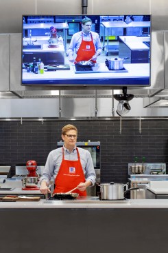 McCormick’s Culinary Education Center features a commercial demonstration kitchen, as well as a 50-person auditorium that can be televised into the lobby, and smaller islands where course attendees can participate, engage, and taste. When divided by partitions, the kitchen can simultaneously host both meetings and tastings. The Culinary Kitchen, focused on products for use in residential settings, includes a dining room and facilities for filming and photography, as well as an editing studio for post-production.