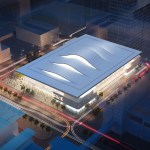 The event center’s main design feature is an inventive roof that swells upward over the arena seating, recalling some of Chicago’s great gathering spaces like Adler and Sullivan’s Auditorium Theater and the Navy Pier Grand Ballroom. With this elegant curving light gray membrane roof and lightweight glass walls, the building follows in the Chicago tradition of the lyrical structure, or engineering raised to the level of art. The smooth, arching canopy has long dramatic rising arcs that will be lit at night, creating an instantly recognizable image for the new event center.