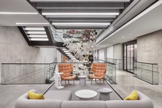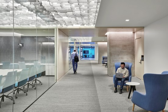 The mix of cultures and generations typical of a large company today means its office must accommodate a variety of workstyles. The diversity of functions at McDonald’s new headquarters mirrors the company’s large embrace. Classic work areas and meeting rooms designed by IA Interior Architects interact with work areas designed by O+A that have the look and feel of hospitality venues. Every architectural gesture functions on its own and in partnership with the spaces around it.