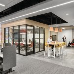 The challenge for both design teams was to make the 9 stories of the West Loop headquarters a narrative worthy of the epic journey they represent. Like co-authors joining forces on one big story, IA and O+A turned each floor into a chapter. A multidirectional staircase in the building’s central atrium provides a striking focal point and an avenue for casual interaction, but also symbolizes the M.C. Escher-esque sensation of moving forward in many directions at once. Shared spaces up and down that atrium spell out the story. Every floor evokes a specific element of McDonald’s success—the kitchen, the flavors, the people and the communities. And every floor celebrates innovation.