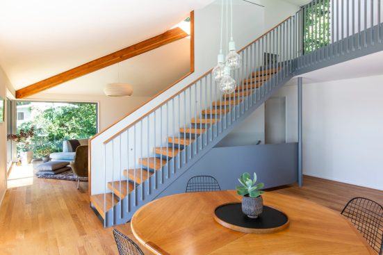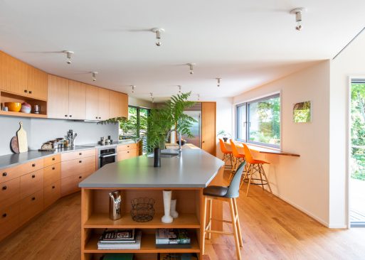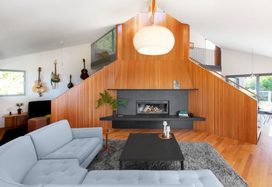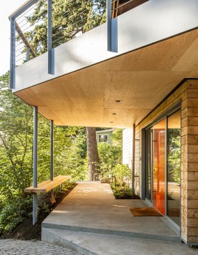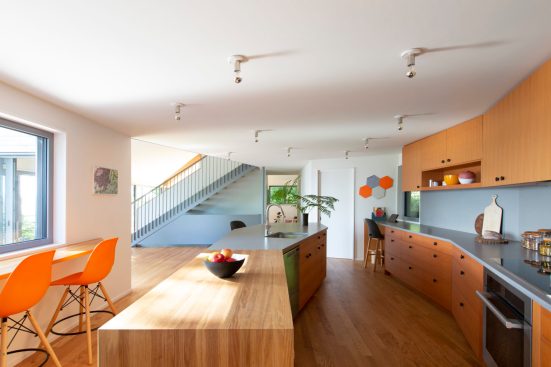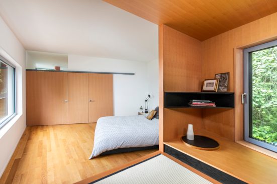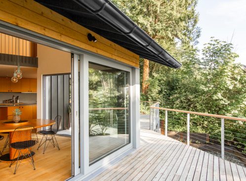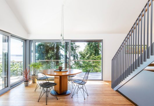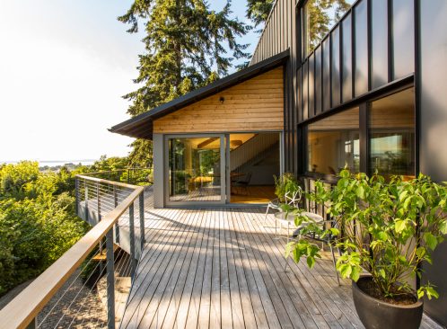 The Me-Kwa-Mooks project showcases the transformative remodel of a once awkward, poorly remodeled home within its existing footprint on a steeply sloped, triangular lot. SHED Architecture’s new design improved access to the residence, connecting to views of the greenbelt and Puget Sound, while improving interior flow. The home is on track to achieve net-zero energy efficiency.