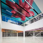 Paris-based Polish artist Michal Batory received the commission to create illustrations for the ceilings, which are printed on removable canvas panels. “He spent two weeks on La Réunion taking a lot of pictures that he reworked as a collage,” Trottin says. The floors are coated in epoxy resin.