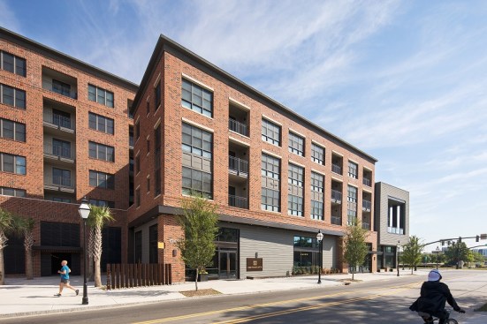 Located in the heart of Charleston’s historic warehouse district, Meeting Street Lofts provides 264 residential units, along with large amenity spaces including pool and lounging area, workout center and cafe. The architecture pays homage to the historical character of the area while introducing modern details to complement the adjacent existing apartment building. Meeting Street Lofts provides shared amenities and parking with its sister building.