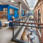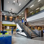 The Menasha High School project disproves the theory that existing building renovations cannot achieve the same modern, flexible and dynamic impact as new construction. Eppstein Uhen Architects (EUA) helped guide the District through a comprehensive process to align the facilities with modern education and implement personalized, collaborative learning practices while preserving the historic character of the building. The enhanced building serves the school’s diverse socioeconomic population through the creation of active learning and collaborative spaces, improved building accessibility and the addition of music and science wings. It was crucial to the District’s vision that renovations addressed circulation and ADA accessibility concerns and that natural light was prominent in learning environments, without sacrificing the iconic exterior of the building. The renovation of a 1930s masonry structure for flexibility and transparency created a number of philosophical and technical challenges. The design preserves the character and history of the beloved structure, while completely transforming the education process delivered to students. A key aspect of this project was creating a department-based layout with adjacent collaborative environments to support a ‘student-centered’ approach, shifting emphasis away from classrooms to providing students options and control in their learning. With an understanding of the different ways students learn and the changing education landscape, learning environments are flexible and adaptable. Additions for new flexible science labs and band/orchestra areas opened up space inside the building to allow for wider circulation paths and department-based collaboration areas. The library and cafeteria were expanded and transformed into student common spaces, becoming centers for student life within the facility. Where additions obscured the historic façade, the original exterior was used to create feature walls in new, light-filled interior courts. The result is a facility that sets the standard for future learning without losing its connection to the past. The building is once again a source of pride for the community and has positioned the district, teachers, students and community for success.