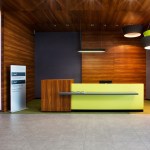 Ground floor houses the main entrance lobby and technical units for factory warehouse including technical offices. Open space offices, director rooms, meeting floor and social space are on second and third floors. Upon entering the lobby, one is greeted by a simple set of lights that associates with the company logo in a very gentle way. Meeting rooms are designed with glass partitions and linear pattern carpet, gypsum board walls with nothing much of a distraction. Geometric carpeting in a different color differentiates communal areas from circulation and workspace.
