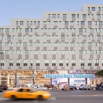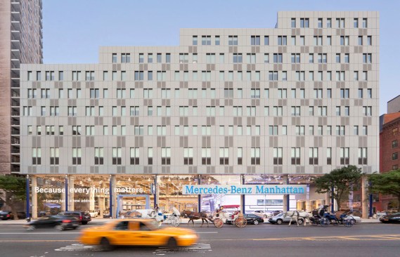 Located at the western edge of Midtown Manhattan, the Mercedes House mixed-use development occupies more than half of a city block, comprising a total of 1.3 million square feet of commercial and residential programs. The building integrates multiple commercial uses at the base and provides 27 floors of housing above. The base building includes an auto showroom fronting Eleventh Avenue with 275,000 square feet of service floors below grade, a 37,000 square feet space for community use and retail, a smaller retail space, a health club and 200 parking spaces.
