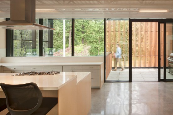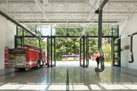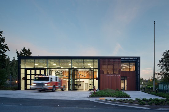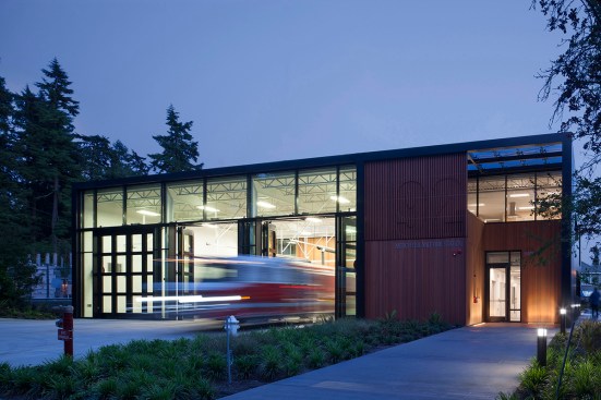 In a climate where year-round moisture and highly variable temperatures can be taxing on HVAC systems, the Miller Hull team has succeeded in fitting together the building’s economical, off-the-shelf components with such precision that the firehouse achieves a level of insulation almost double the legally mandated rate. The resulting energy efficiency helps boost the building’s stellar ecological bona fides; even more importantly, it backs up the image of cool, cozy hominess that the building projects, creating a comfortable environment for the firefighters who work in it.