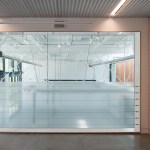 Roofed by a space frame, the main structure is almost entirely unencumbered by interior supports, and the primary materials palette of glass and metal lends it a refined urbanity. At the same time, the architects have added patches of wood slatting, a rustic note in keeping with the leafy park-side site and with the forested Pacific Northwest in general.