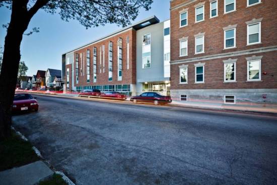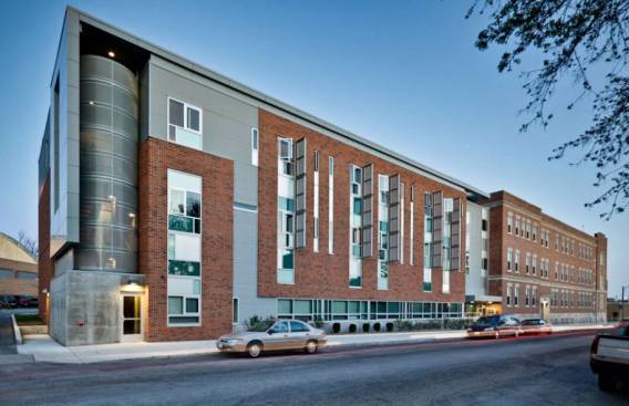 Mercy Housing at Johnson Center “shows social responsibility, simplicity and elegance” the jury commented about this former hospital building that was renovated and expanded to establish Milwaukee’s first fully supportive housing facility. Vacated ten years ago, the 1920s structure on the city’s near south side was chosen as a catalyst to create a permanent solution for the chronically homeless. The facility now contains 91 studio apartments plus leased spaces for supportive services, such as basic medical, career counseling, drug and alcohol counseling, as well as a technology lab and community center. To meet the owner’s objectives, the architect provided a design solution that is indistinguishable from a market-rate development and also blends a modern addition that features high sustainability and universal accessibility with an existing structure, which had few of those characteristics. The project includes passive sustainable strategies, including extensive daylighting and active energy-saving systems. An array of roof-top solar panels augments the building’s hot water supply. In the existing building, original materials like terrazzo flooring, brass handrails and exterior lighting fixtures have been reused and hazardous materials were removed. Since its opening, the project has helped to reduce Milwaukee County’s homeless rate.