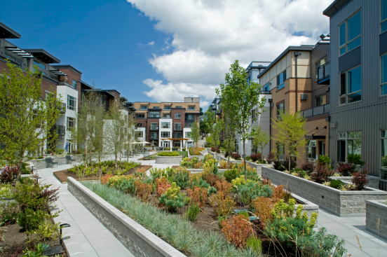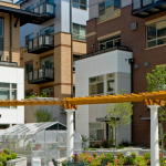 Located just north of Seattle’s University Village, the Burke Gilman trail, and the University of Washington, this full-block development provides housing and amenities for multiple generations in one project. The buildings are sited around a central landscaped courtyard, with retail spaces and apartments along the busy arterials and assisted living units along the quieter residential streets. The development also includes amenities for the greater community, such as a pocket park and a south-facing plaza featuring public art.