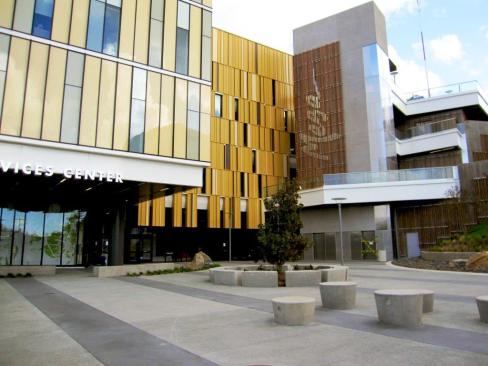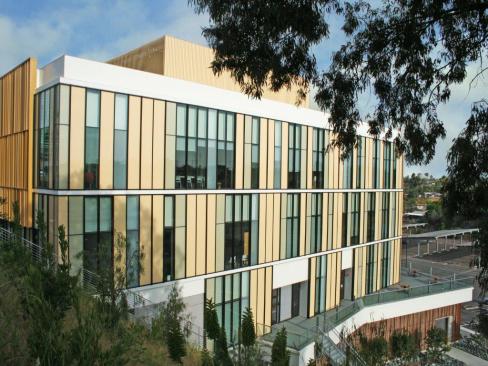 Built into a 50-foot hillside, the new Mesa Community College Student Services Center in San Diego incorporates PPG coatings and glass to help seamlessly integrate both the local landscape and 16 different academic departments into its open, airy and energy-efficient 85,000-square-foot space.