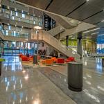 Designed by the award-winning firm ARCHITECTS hanna gabriel wells to earn LEED® Gold certification, the center features a series of terraced interior and exterior spaces that function as communal gathering hubs. An open four-story atrium adds wayfinding visibility and fosters interaction among students, faculty and administrators, as well as the school’s academic departments.