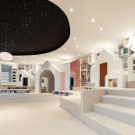 At the very end of ‘the Xanadu of Rainbows’, the space surrounded by white ETFE walls is the children books area. With the help of translucent ETFE, the Castle of Innocence is an inner world inside the bookstore. Many complex installments were added in the space, building a world where children can interact with each other and with the bookstore itself.