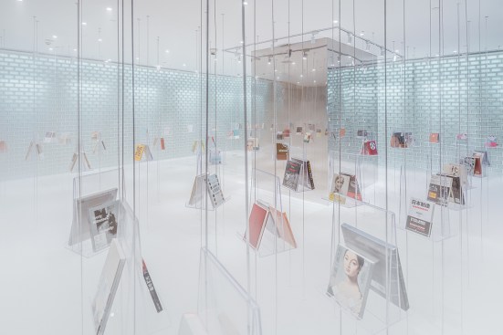 As an entrance, ‘The Sanctuary of Crystal’ is a space full of books and nothing else. The latest arrivals were arranged on the pre-fabricated transparent acrylic shelves, outstanding the presence of the books. Using glass bricks, mirrors and acrylic, ‘The Sanctuary of Crystal’ is a shining white space, luring customers into the heart of the store.