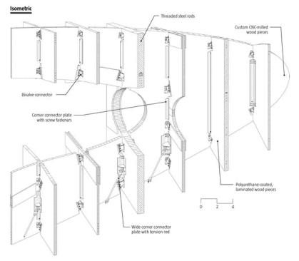 Plywood, metal, and glue go back a long way in the building industry. But they can always be pushed further, as demonstrated by the project that debuted in March 2011: the new Metropol Parasol in Seville, Spain, designed by Berlin-based Jürgen Mayer H. and engineered by Arup. Discard assumptions about how laminated wood pieces fit together, how they are shaped, how they are coated, and how large a structure they can create—and the possibilities open up.