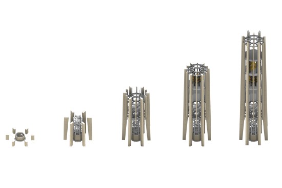 Many carillons are housed in opaque towers or attached to buildings. “I felt it was important to make it open so that you can move under and through it,” Rodriguez says. “But how do you support 88,000 pounds of bells?”