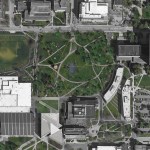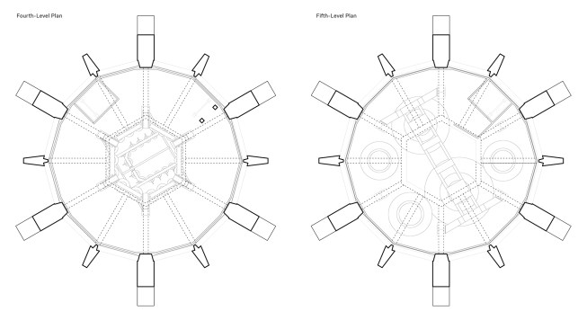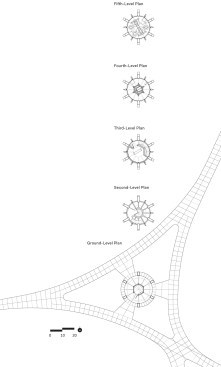 The solution employs six 128-foot-tall limestone piers that support six radial steel hubs braced by six vertical precast concrete fins. An acoustical louver system shields the bells while allowing their music through. The structure’s monochromatic hue is based on the Indiana limestone that clads its piers, the famed masonry that is locally quarried and used on many of the campus’s buildings.