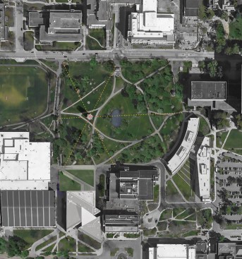 Rodriguez worked with Dan Sesil and Pat Hopple from LERA Consulting Structural Engineers on developing a radial structure that would support the instrument’s heft and allow its sound to project across the campus. But determining the height of the structure required a bit of Goldilocks-like collaboration. If the carillon is too low, the sound is confined to a limited area; too high, and the sound dissipates. “We worked with carillonneur John Gouwens and the bell fabricator [Netherlands-based Royal Eijsbouts] to define the ideal,” she says.