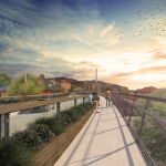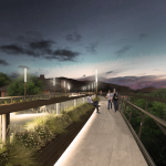 The concept of the bridge combines elegant lines, natural materials and efficient design. The low profile of the bridge along with its artistic solution will act as frame for the impressive landscape rather than distraction. To counter this idea, the proposal is aimed at enriching the pedestrian area both on the bridge and below, including the use of space under the parking bridge. The concept of the bridge fully respects the requirements of the public.