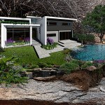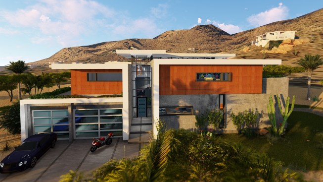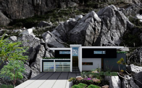 This 600sm/6500sf Mid-Century Modern villa features a unique central atrium running the length of the home, connecting the Main Entry and the Second Entry, creating a light filled, slot canyon effect.