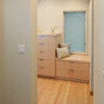 Remodeling this 50’s rambler entailed refreshing the main floor, plus an addition of a second story Master Suite; all designed in a minimalist aesthetic to heighten the lush, retreat-like experience of the site. Diffuse light floods in from high windows, filtering in and around open spaces, and through frosted glass wall panels. The result is serene and meditative – perfect for this bedroom aerie, and befitting the new-found beauty of this mid-century classic.