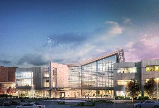 Hord Coplan Macht provided detailed analysis, architectural design and medical planning services for a proposed three story, 135,000 sf infill renovation of MidMichigan Medical Center’s Midland campus. The goal of the project is to provide a new Cardiovascular Center of Excellence while updating the age of plant for the hospital. Hord Coplan Macht reviewed the hospital’s existing clinical workflows and provided recommendations and education on current best practices in healthcare for each department. This project was a result of the Facility Plan that Hord Coplan Macht completed for the Medical Center, which included reviewing the hospital’s existing census and projected anticipated departmental growth patterns throughout the Medical Center. Hord Coplan Macht provided site analysis showing existing and proposed vehicular traffic patterns, parking, services, and utilities. Hord Coplan Macht evaluated several project locations on the campus for the construction of the new center and worked in collaboration with the owner’s representative on separate cost modeling scenarios before settling on a location between the Emergency Department and inpatient tower. The project includes a phased redevelopment of the center of the ambulatory portion of the campus, and consolidates clinical departments, including a cardiac diagnostic suite, cardiac clinic, patient outreach laboratory, radiology, and vascular clinic; while also providing future expansion for the emergency department, pathology laboratory, and medical offices. Hord Coplan Macht’s design solution reintroduces the natural environment, found so abundantly around the campus, back into the hospital and affords a much needed destination and arrival sequence in the ambulatory zone. The design features twin garden areas connected by a public pedestrian “street” that connects the Emergency Department to the inpatient tower. The northern garden area is an exterior multi-level healing garden, while the southern garden is a vaulted, interior winter garden that provides a perennial retreat for patients, visitors, and staff. In addition to creating a new Center of Excellence, the project maximizes day lit areas, separates pedestrian traffic flows, and improves wayfinding for both the Cardiovascular Center and MidMichigan Medical Center – Midland.