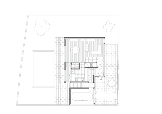 Car access to the garage is also made at the level of the enabling street, which, therefore, allows direct and flat pedestrian access from the garage to the entrance hall of the house.