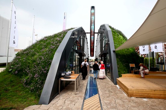 Inside the pavilion is a showcase dedicated to its active role in the fight against hunger, to its solutions for improving water quality, to nature conservation, and to biodiversity. Interactive monitors, scientific and artistic events and the overall shape of the pavilion are a demonstration of the characteristics and progress of Belarus.
