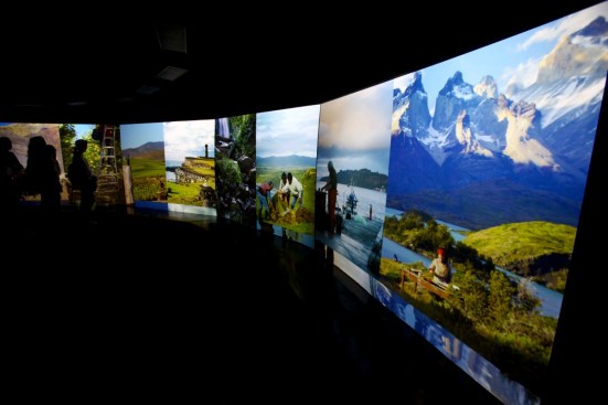 The large wooden structure, accessible by a central ramp, hosts an array of art works at its very center: photography, video, multimedia, graphics, furniture and sculptures. A tunnel surrounded by twenty-four synchronized projectors immerse visitors in a virtual reality experience, on a fishing boat at sea or in the vineyards of Carmenere. All these elements combine to illustrate the various regions and typical crops, communicating the diversity of its territory, the people, the fruits of the land, the imagery and the banquet that Chile offers to the world.