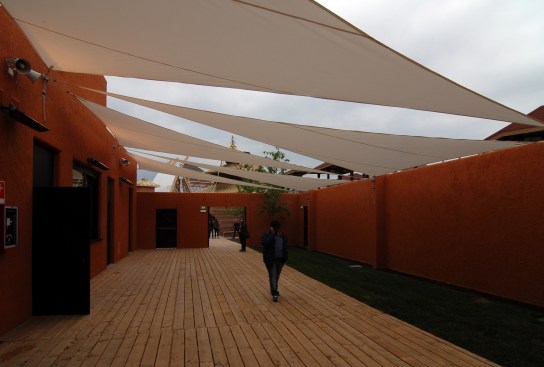 Taking design cues from the Nubian house, the one-level Sudan pavilion illustrates the home life and agriculture of the country.