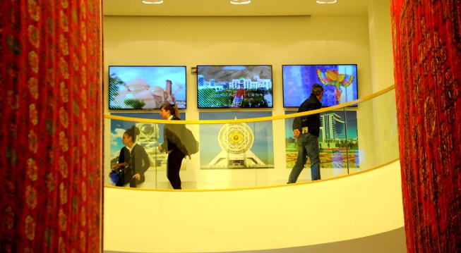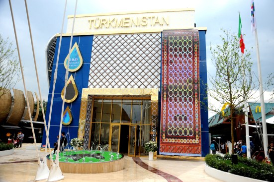 The Pavilion displays traditional as well as modern symbols of Turkmenistan. At the entrance of the white pavilion, there is a water fountain with a horses head of the oldest known horse breed in the world, the “Ahal-Tekke horse”. Over the main entrance there is a wooden structure of a traditional Turkmen yurt and a large LED carpet which offers a glimpse of the most beautiful hand-made turkmen carpets. The three drops of water at the entrance and the large LED water drops measuring approximately 250 square meters on the side of the pavilion with the long waterfall behind it are certain to invite visitors to take some memorable photos. Inside the solid construction, following the example of the white capital Ashgabat, three exciting levels are waiting to be explored. There, you will find the theme of quality food production, biodiversity and health, even huge hand made carpets, a water feature with projection, a 5D cinema and a genuine traditional yurt on the rooftop. The restaurant on the ground floor and the cafe on the rooftop will invite visitors to taste and feast on traditional Turkmen dishes.