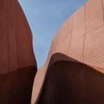 Designed by Foster + Partners, the striking form of the UAE Pavilion is created by a series of tall rippled walls. These impressive 12-metre structures evoke both the narrow self-shaded streets of the UAE’s historic settlements and the magnificent open sand dunes of its deserts. 3D scans of dune surfaces have informed the wall design to create an authentic texture. These sinuous, curving shapes guide visitors through a range of intriguing spaces and exciting, informative experiences. Complementary landscaping based on native UAE species provides a welcoming green backdrop.
