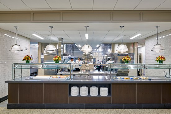The school’s farm-to-table food service operation, reflects their overall commitment to sustainability. Environmental initiatives are also reflected through the materials palette, incorporation of ample daylighting, and installation of geothermal systems. Views to the north, intentionally visible through the open kitchen. include the school's organic gardens and further emphasize the farm-to-table program.