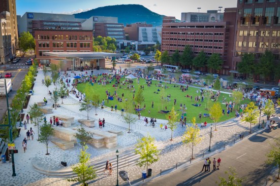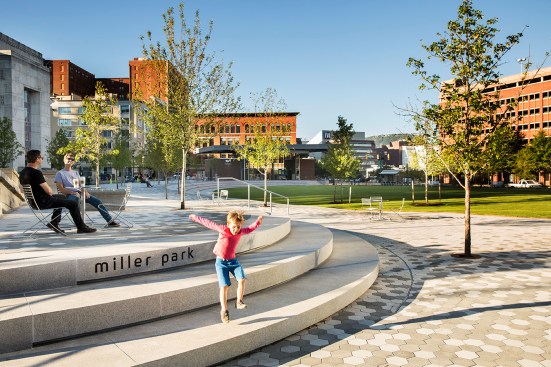 CHATTANOOGA, TN — Spackman Mossop Michaels (SMM), an award-winning international landscape architecture firm, and Eskew Dumez Ripple (EDR), an award-winning architecture firm, have partnered to redesign Miller Park in Chattanooga’s thriving Innovation District. Opening to the public on September 14, 2018, the $10.3-million project is a leading example of successful placemaking, reflecting SMM/EDR’s commitment to designing collaborative, accessible, and energized public spaces. Commissioned by the City of Chattanooga, SMM/EDR led the planning and engagement process, with SMM leading the site design, and EDR designing a performance pavilion.