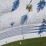 While serving as a green oasis in the city center, the park is also designed to accommodate cultural events and technologically-advanced productions. Free high-speed wifi is available throughout the park, and an underground system of internet cables and electricity can support high-tech digital art installations, performances and outdoor movie screenings. The state-of-the- art pavilion designed by EDR, along with the open lawn, serve as an ideal space for events. A digital projector on the Pavilion allows for movie screenings and live performances.