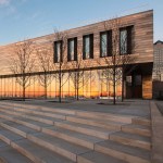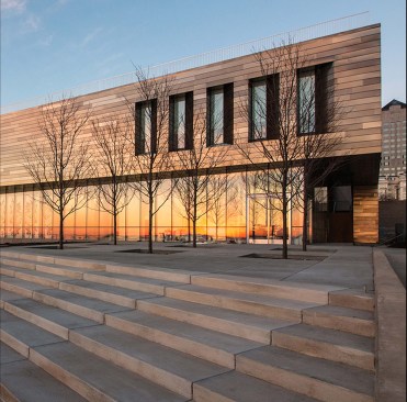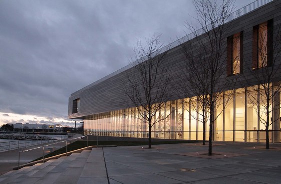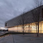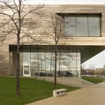 Located on the shoreline of Lake Michigan, this project at the Milwaukee Art Museum involved a new addition with an entrance at the lakefront and the complete renovation of existing permanent galleries. The museum was built in three phases – the original 1955 building, a 1975 addition for the permanent collection and a 2001 expansion with a new main lobby, changing gallery and lecture hall. The new addition grafted onto the 1970s wing takes the form of a cantilever facing the lake, under which an all-glass first floor allows visual transparency between the building and lakefront. It creates a new waterfront entry atrium with a café, lounges and sculpture galleries with water views while allowing for an expansion of the contemporary galleries as well as a new changing gallery. The new addition is clad in darkened stainless steel panels that harmonize with the color of the existing concrete building and reflects the ever changing light of the water and atmosphere with a diffuse matt finish. Deep-set apertures provide views of the lake, city bluffs and newest wing of the museum. The addition also includes new stairs to a rooftop terrace at the level of the downtown bluff top, allowing pedestrians to walk directly onto the roof from the city, view the lake below and then descend the stairs to the lakefront walk. The existing permanent collection galleries were completely renovated, with new gallery partitions and visitor-friendly organization.