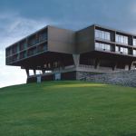 bluff overlooking Lake Michigan with rectangular volumes cantilevering