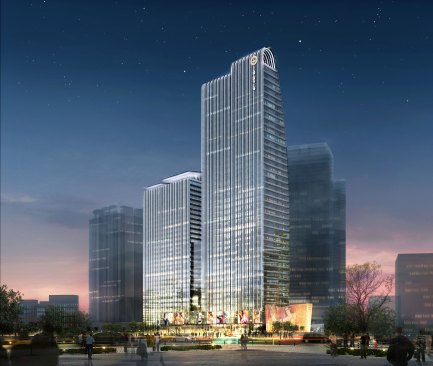 The commercial office tower, designed to standards for Class A office buildings, is approached and entered from the north plaza. The grand office lobby lies directly beneath the split of the two tower forms and contains an interior open space of 14.5M tall that connects directly to the main, 3-zone elevator lobby.