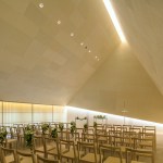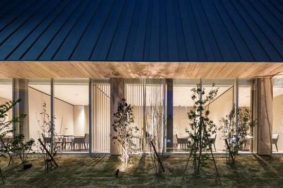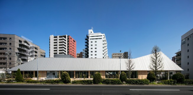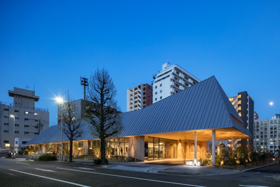 We designed a banquet hall in the center of a busy city (Nagoya-shi) covered with a large roof fostering a warm and communal atmosphere.
