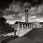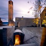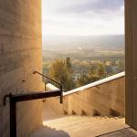 On the exterior, earth-toned concrete give the building forms an understated, contemporary aesthetic. The buildings surround a central courtyard and amphitheater. Inside the buildings, the visitor is embraced by quiet, cool, and dimly lit spaces. The belltower—an 85-foot-high viewing tower—rises above the courtyard affording incredible views of the valley and becomes a signature for the winery itself. Dramatic underground cave cellars highlight the winemaking education tour, media center, boutique and tasting areas. Exterior courtyards and gardens provide space for picnicking.