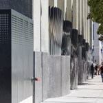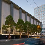 Upgrades to the Mission Street Substation in San Francisco’s South of Market neighborhood at the corner of 8th Street provide security while enhancing the public realm. Architect William Merchant designed the monumental Brutalist structure, clad in dark travertine and featuring two WPA-style bas reliefs by local artist Robert B. Howard. Built in 1948, when industrial buildings and infrastructure dominated the area, the project today occupies a transitional neighborhood, with hotels, new housing and apartment towers, Twitter’s headquarters, and a Quaker meeting house.