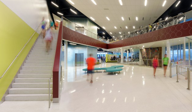 Facing increased student demand for recreational programming and space, Missouri State University created the Bill R. Foster & Family Recreation Center – a place where the entire campus community can exercise, play, compete and learn about health and wellness. The facility is equipped with basketball courts, a multiuse activity court, fitness center, natatorium with fitness lap lanes and leisure pool, multipurpose group exercise rooms, a jogging track, climbing/bouldering wall, offices and other amenities to empower staff and students. We worked with the university to find creative ways to engage students throughout the design process and leverage their input to ensure the building achieved its full potential.