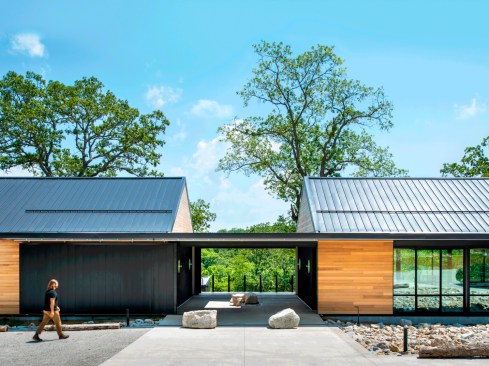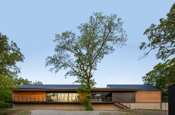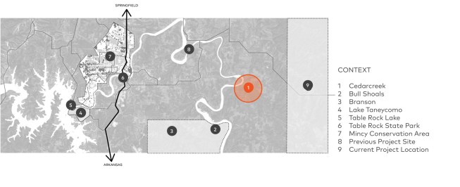 Immersed in the landscape of the Ozark Mountains, the Missouri State University Ozarks Education Center is designed to serve as a gateway for learning and observation of the surrounding state conservation areas and ecological resources. The community facility, at 4,310 sf, provides one central location to accommodate larger groups of students and researchers to take part in ecology research and education through a unique experiential lens. The MSU Ozarks Education Center reflects the natural elements of the surrounding topography and was guided by the concept of designing with a light touch, both physically and sustainably on the natural environment.