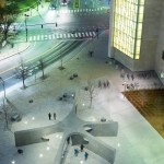 The intersection of the star-shaped form and the central void creates a smooth, curved surface the underside of which acts as a bevel marker and reads “In the line of duty, Sean Collier, April 18, 2013.” The longest walls of the memorial shelter the site from Vassar Street and simultaneously create an entry into the memorial. The two most acute walls are aligned with the location of the shooting just a few feet away. Carved into the south-facing wall is an epitaph from Sean’s brother’s eulogy, “Live long like he would. Big hearts, big smiles, big service, all love.” Clusters of honey locust trees create a living canopy above the solid stone structure to mark the passage of time. In contrast, point lights set into the pavers permanently inscribe the constellation of stars in the sky the night of April 18th, 2013.