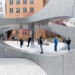 Situated on MIT’s campus in honor of Officer Sean Collier who was shot and killed on April 18th 2013, the Collier Memorial marks the site of tragedy with a timeless structure—translating the phrase “Collier Strong” into a space of remembrance through a form that embodies the concept of strength through unity. The memorial is composed of thirty-two solid blocks of granite that form a five-way stone vault. Each block supports the other to create a central, covered space for reflection. Inspired by the gesture of an open hand, the memorial’s shallow stone vault is buttressed by five radial walls, which extend outward toward the campus. The ovoid space at the center of the radial walls creates a passage, a marker, and an aperture that reframes the site.